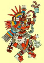 Покравитель - тескатлипока, сияющее/ дымящееся зеркало.Бог ночи, владыка подземелий, антипод Кетцалькоатля.Бог Творец и Разрушитель мира.